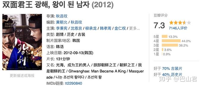 电影《双面君王》讲述的就是光海君面对朝政混乱,形式紧张的局势,让大臣找了一个替身来应对危机的故事。